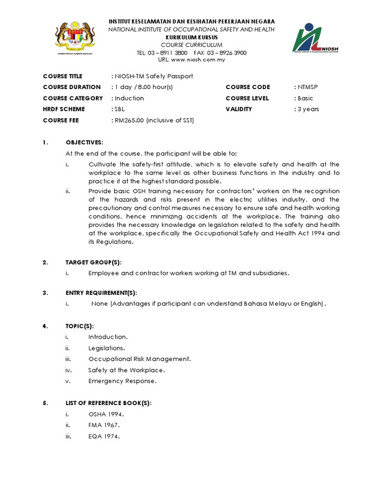 Dasar Dan Manual Keselamatan Dan Kesihatan Pekerjaan Keywords. Menurut Peraturan Keselamatan dan Kesihatan Pekerjaan Klasifikasi Pelabelan dan Lembaran Data Keselamatan Bahan Kimia Berbahaya 2013 Halaman. Aras 5 Kaunter Utama Blok D4 Kompleks D Pusat Pentadbiran Kerajaan Persekutuan 62530 Putrajaya.